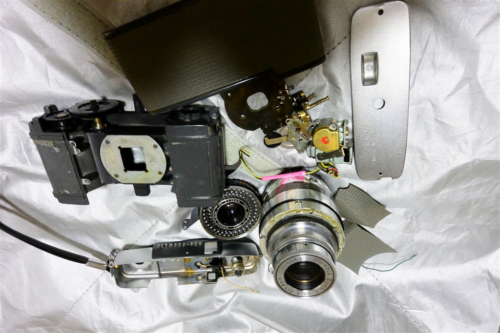 分解したペンと改造済み,Zuiko の引き伸ばしレンズ