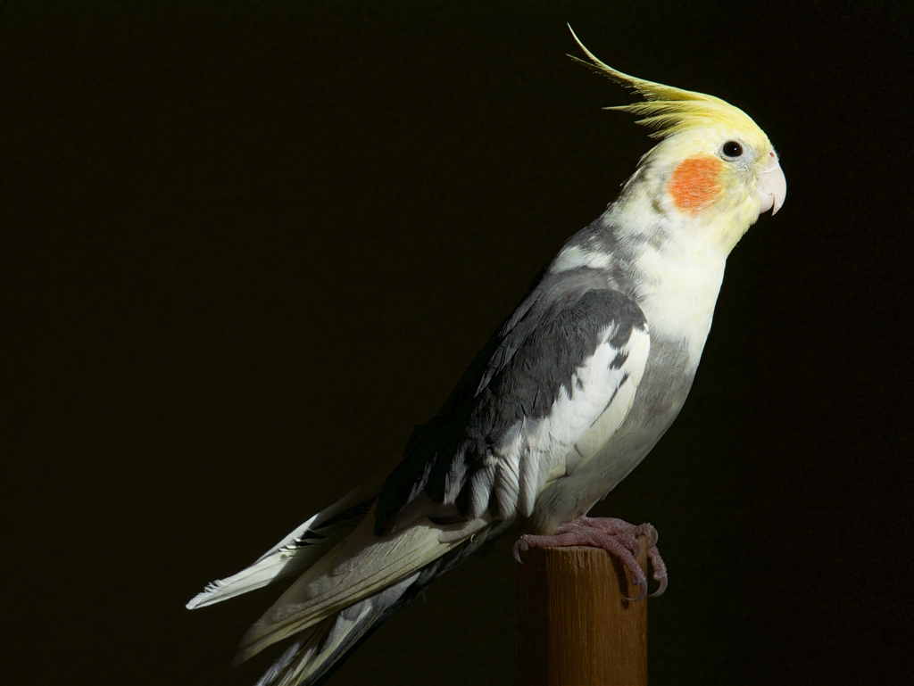 スポットを浴びたオカメインコ
