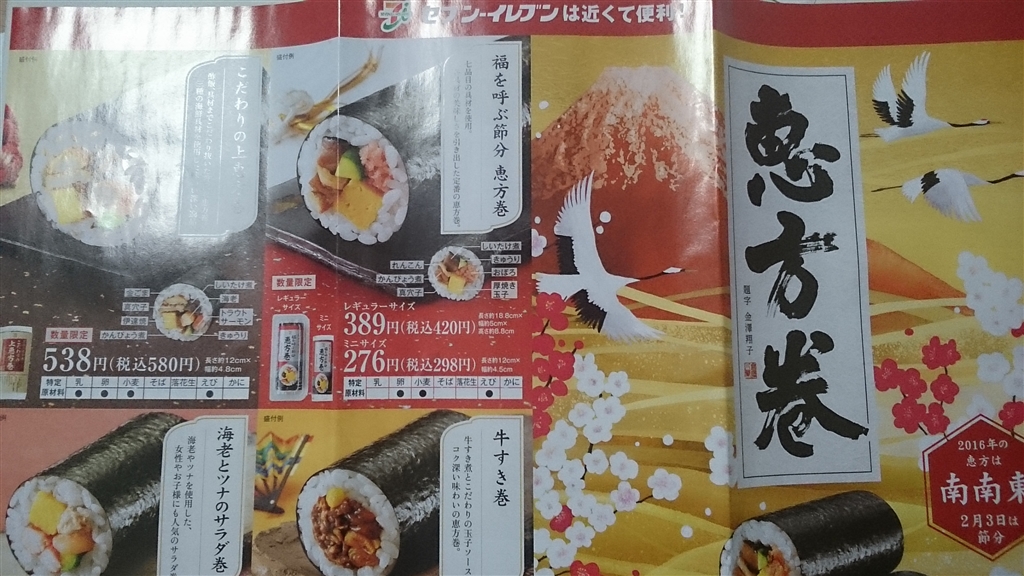 セブンイレブンさんの恵方巻 2016年のチラシ版