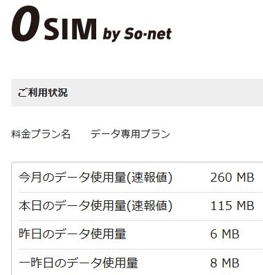 本日の消費115MB