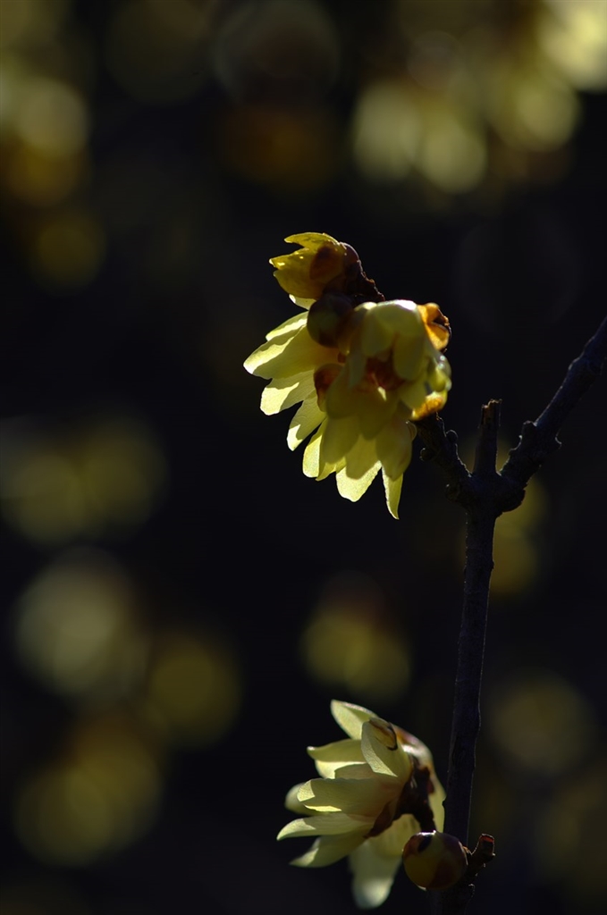 ロウバイ 逆光で