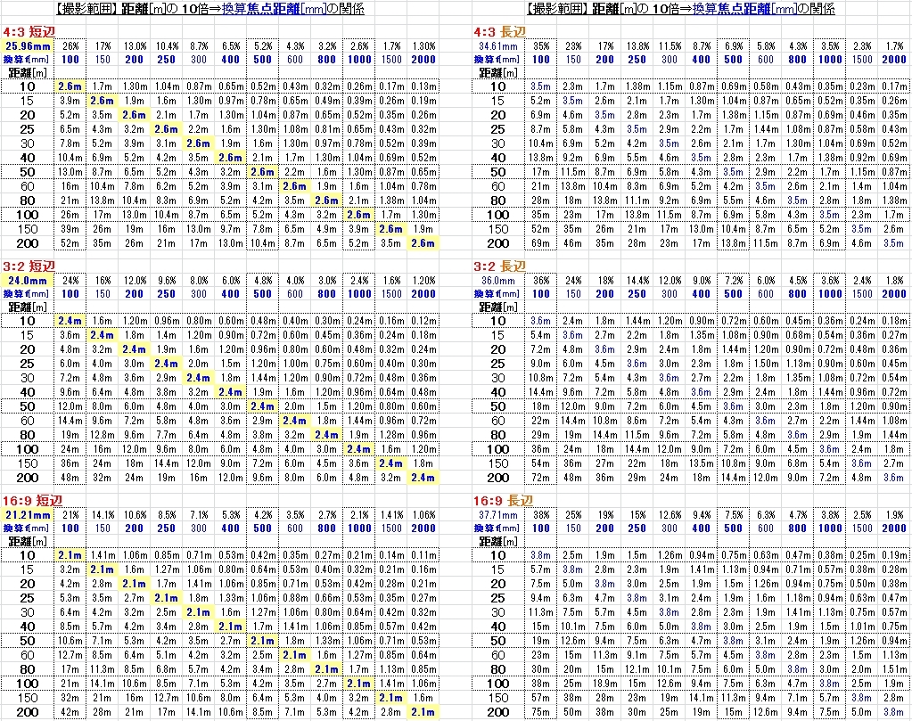 【撮影範囲】撮影距離と換算焦点距離2x3条件