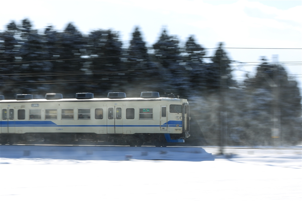 唐突に射す陽光。輝く雪煙。気まぐれな北陸の冬空。
