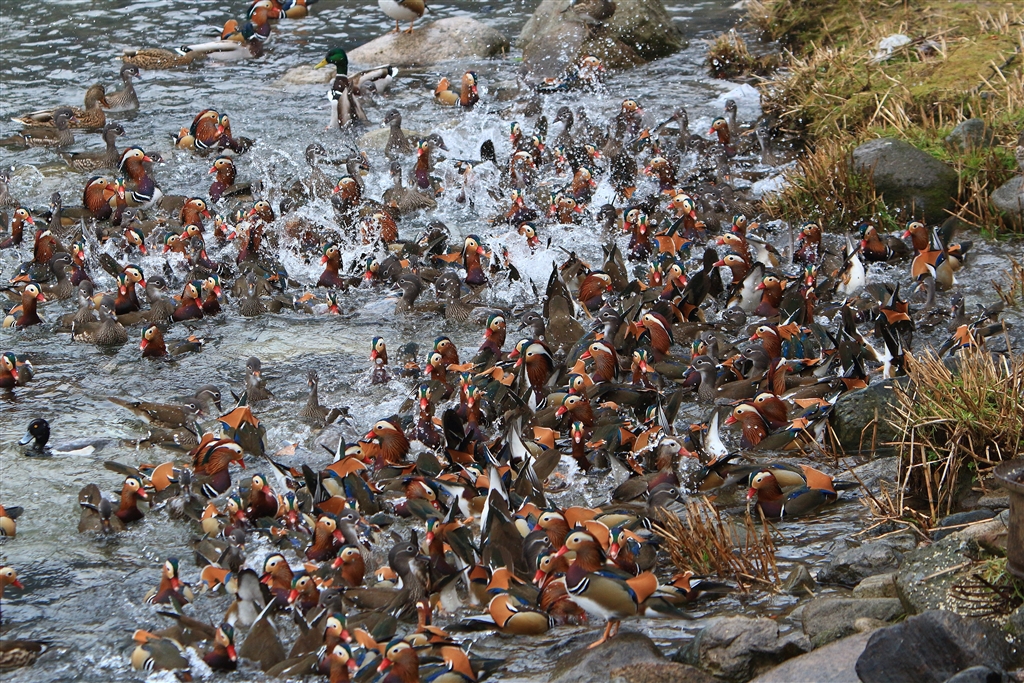 大好物のドングリが落ちている処は押し合いへし合い