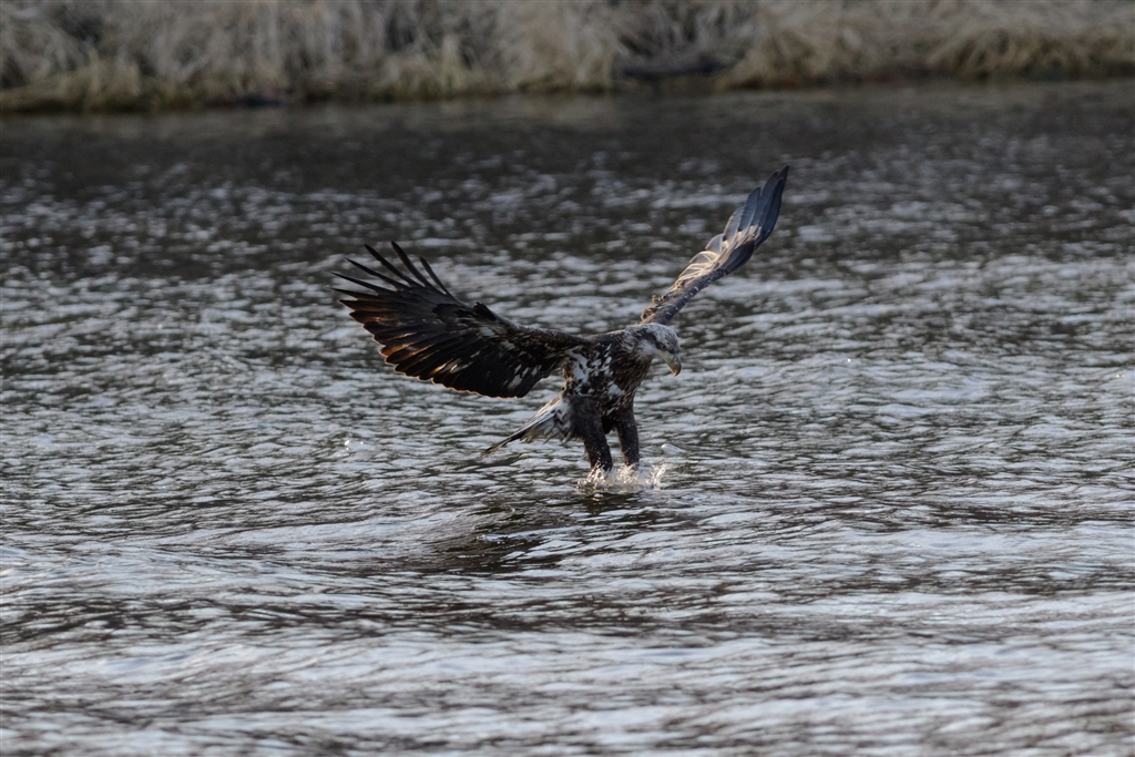水面に立つ鷲(笑