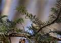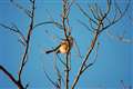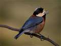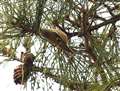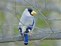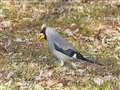 この里山では良く見かけるイカルさん。木の実を口の中で転がしています。 |
