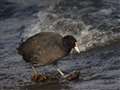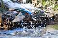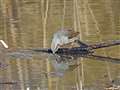 里山の小沢で水飲み中のヒヨドリさん。ここは鳥さんたちの水飲み場。 |