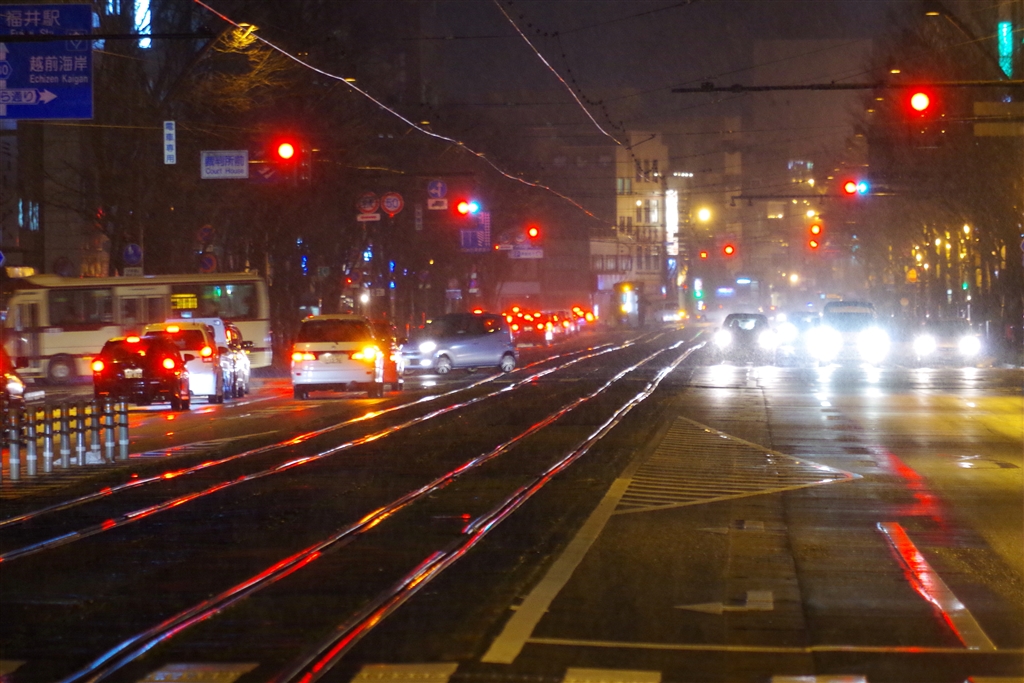 白いものが降り始めました(仁愛女子高校電停にて)