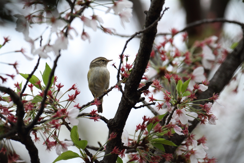 桜にキマユムシクイ・・・画になるのかな?