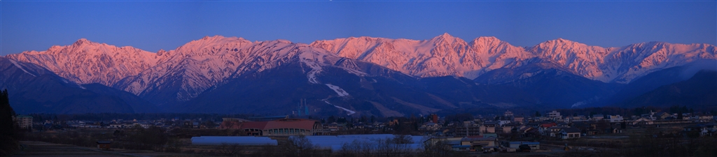 白馬三山に朝日が当たると…(グラデーションNDフィルターを使用)