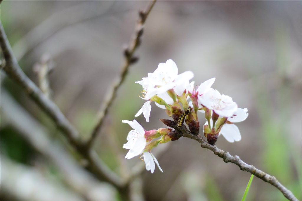 伐採された桜によく見ると毛虫が