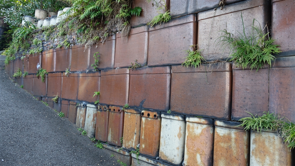 土管以外でもいろいろな陶器で作られ壁の坂がありました