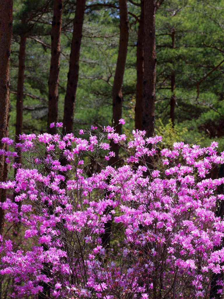 道の駅 鳴沢の近くの樹海に咲くみつばツツジ