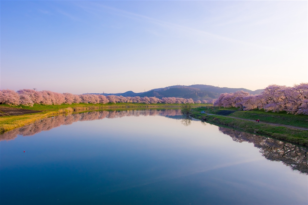 阿武隈川水系白石川の両岸に数キロにわたり桜が続きます