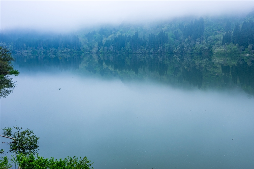 朝霧に流れる只見川
