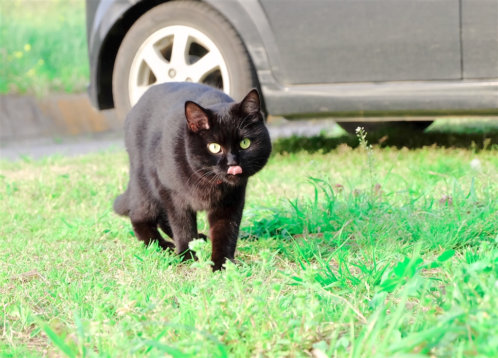 タンゴとお散歩、お鼻をペロリ