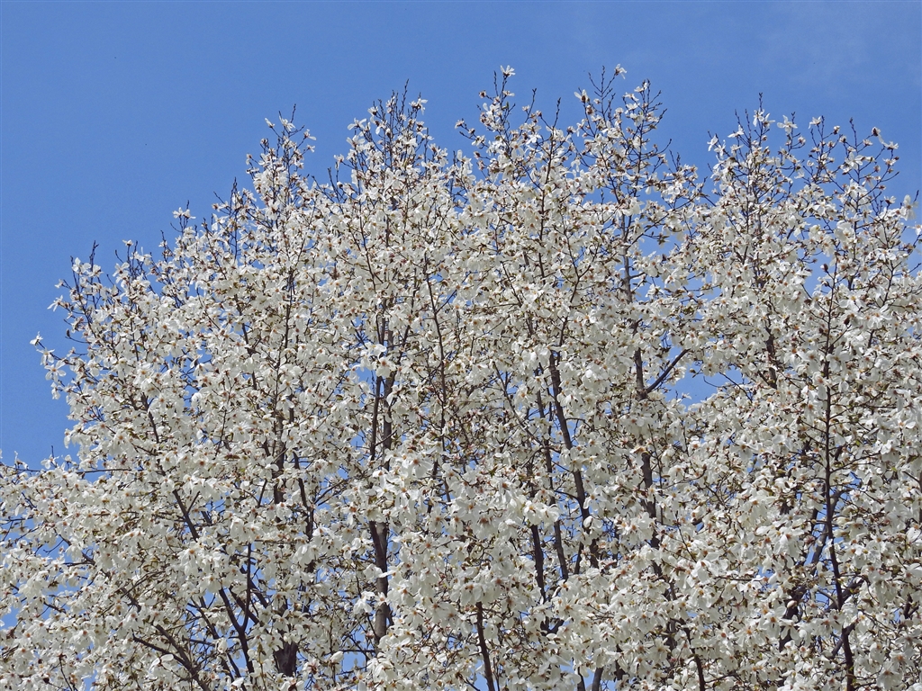 いつもの山の中腹にコブシの大木が今年も健在、豪華に満開。