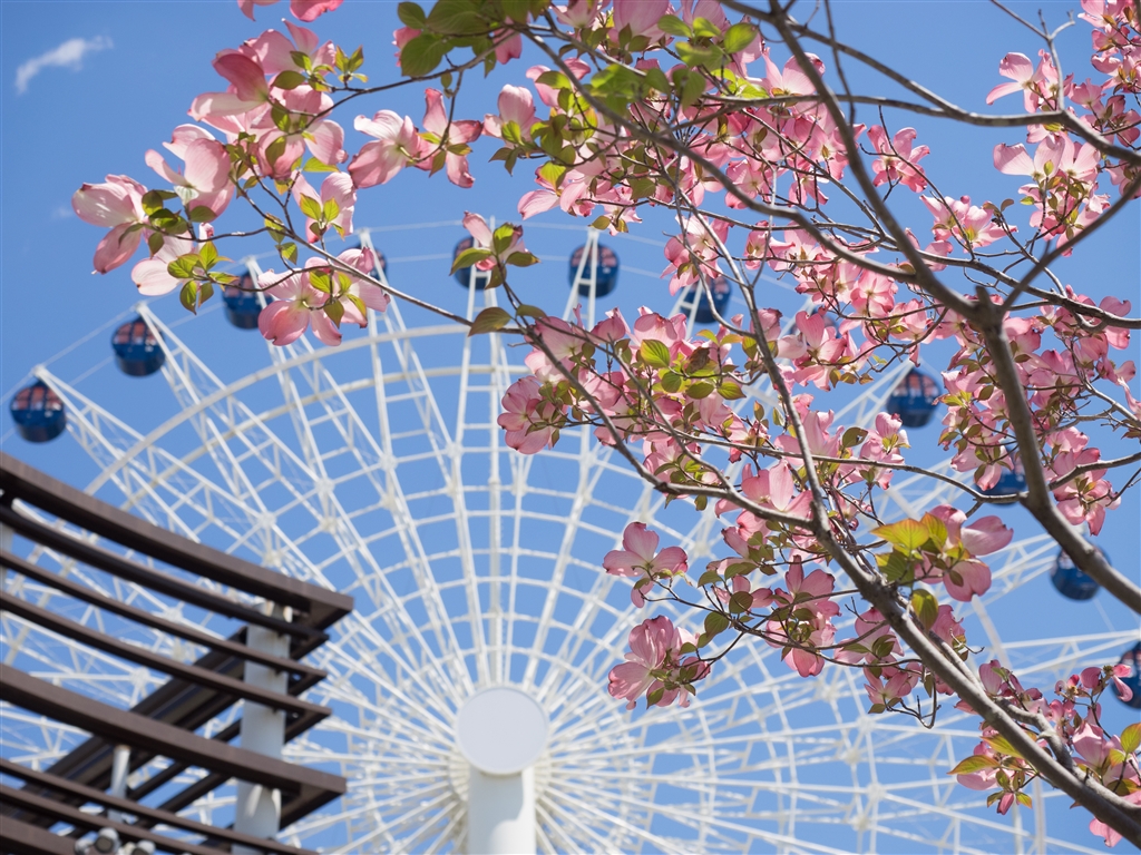 おまけ。仙台港近くのアウトレットモールにて、ハナミズキと観覧車♪