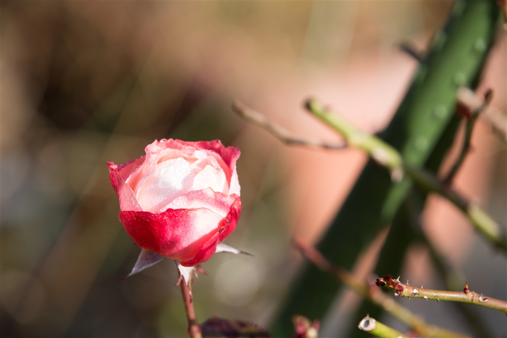 時期外れの秋バラ。朝一なので夜露付きです(^ ^)