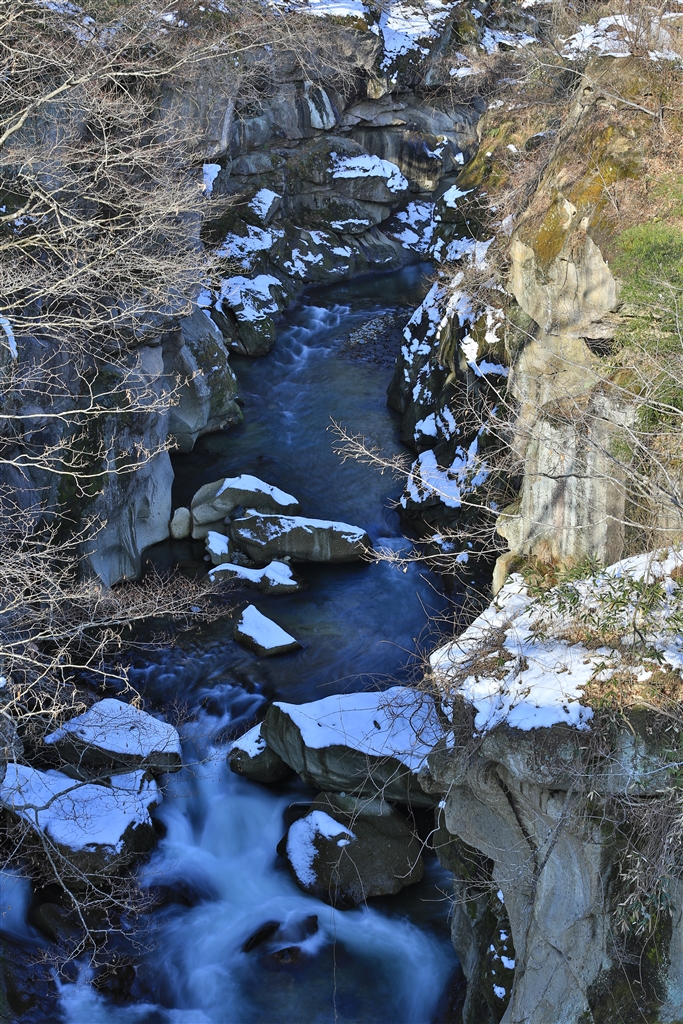 HDR撮影にて、秋保温泉街の警告です。とにかく足元が凍ってて、、