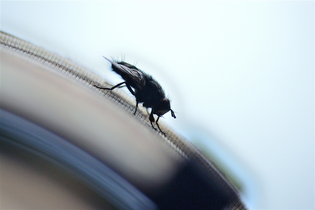 レンズに止まった蠅、肝心な鳥が中々来ないので( ´艸`)