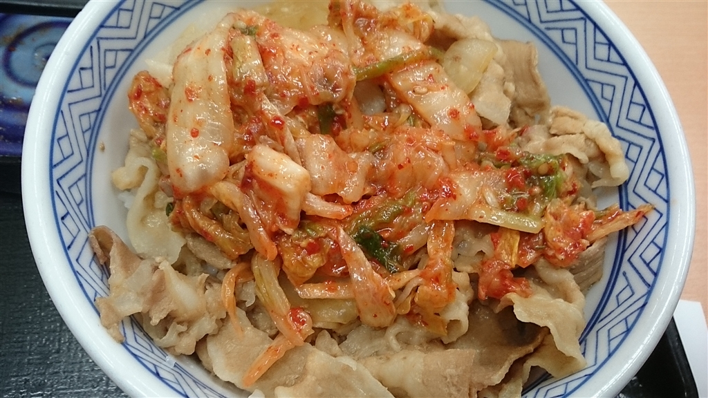キムチを豚丼にのっけます。