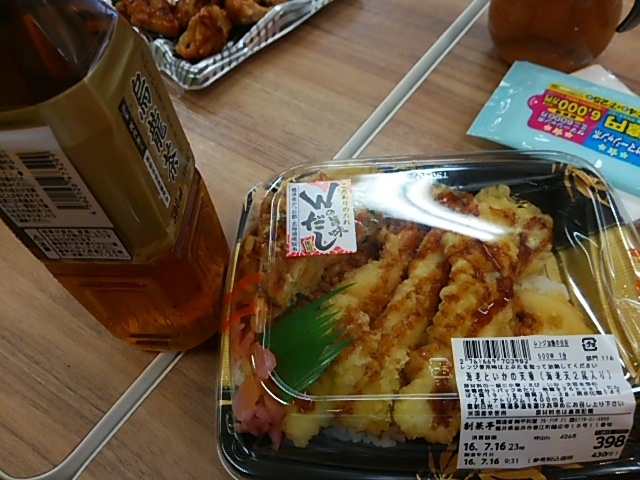 天丼 + 烏龍茶 (+ 焼き鳥)