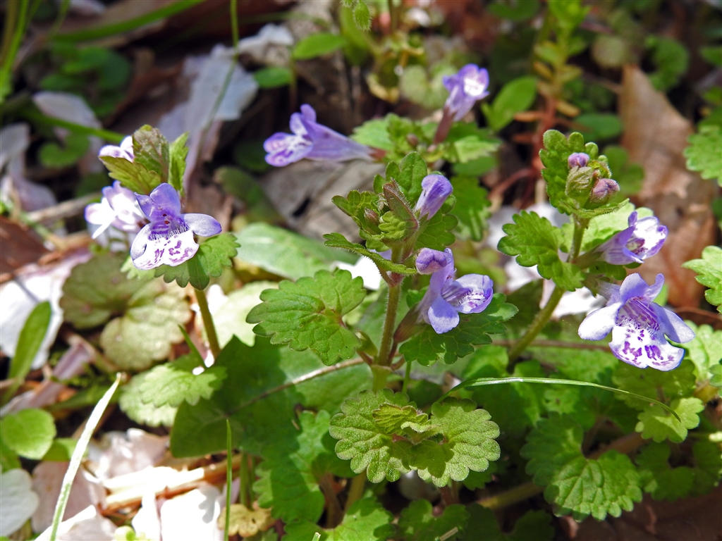 カキドオシ(垣通し)茎は初め直立、開花して倒れ蔓になり垣根を越して拡大、雑草扱い