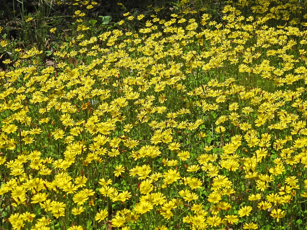 イワニガナ(岩苦菜)別名ジシバリ(地縛り) キク科ニガナ属の大群落、驚いた。