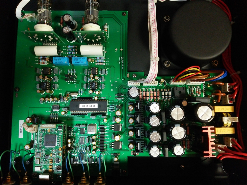 真空管の下の白いコンデンサ