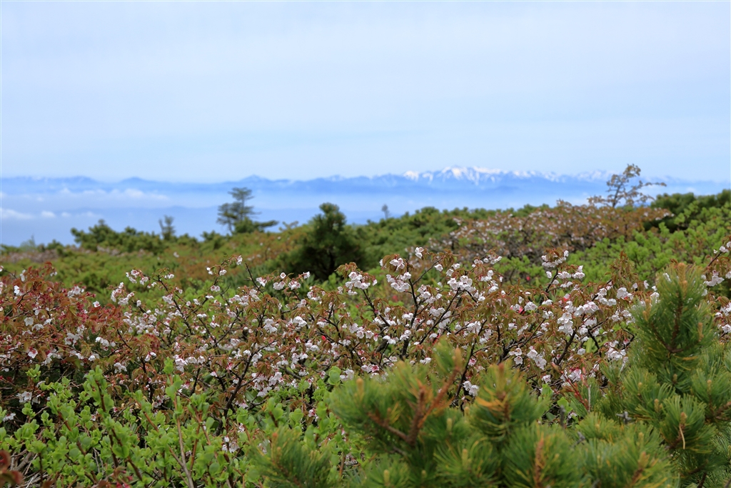 ミネザクラの遠くに朝日連峰
