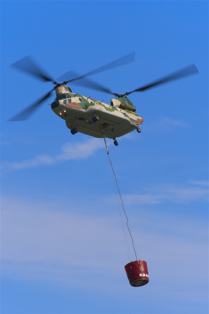 CH-47「チヌーク」。このあと「バケツ」から水をドバー!!