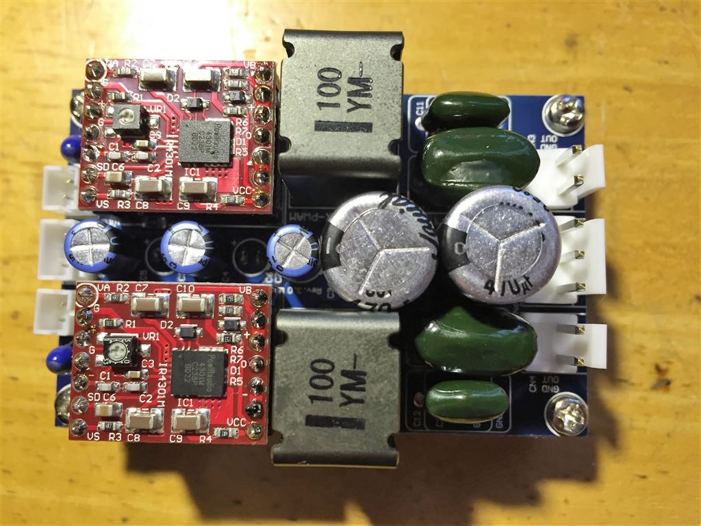 アンプ基板は煙草サイズで100W×2