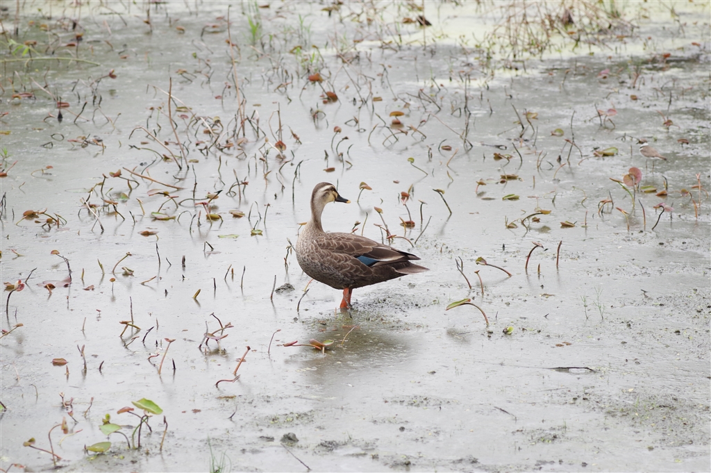 蓮田に鴨
