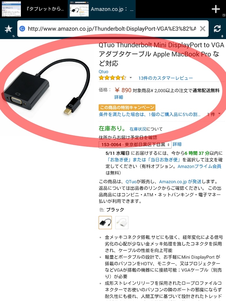 『(※)Amazon.co.jp: Mini DisplayPort to VGAアダプタケーブル』 タブレットPCすべて HARE58さんのクチコミ掲示板画像1/1