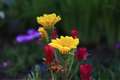 花の特徴は、目が覚めるような鮮やかな黄色花弁5枚と赤い雄しべと上部の小さめの花弁に付く赤い斑点です。