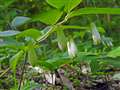 キエビネ(黄海老根) 林床に自生する野生ランで、これも絶滅危惧種。 |