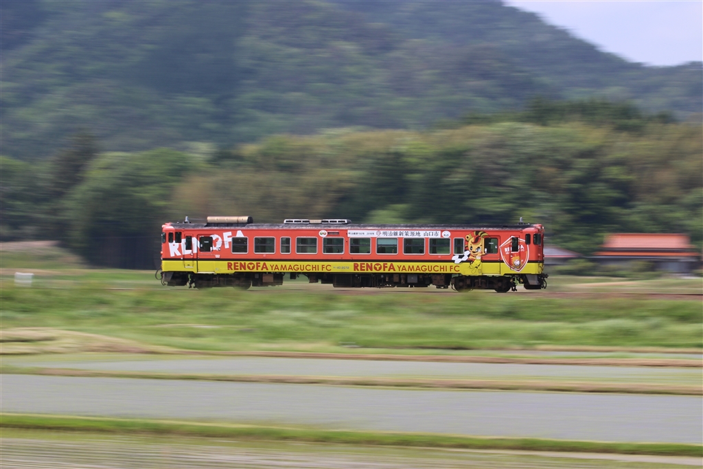 山口のJ2サッカーチーム レノファのラッピング列車