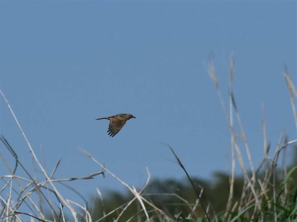 ヒバリも揚げヒバリどころではなく餌を咥えて水平移動