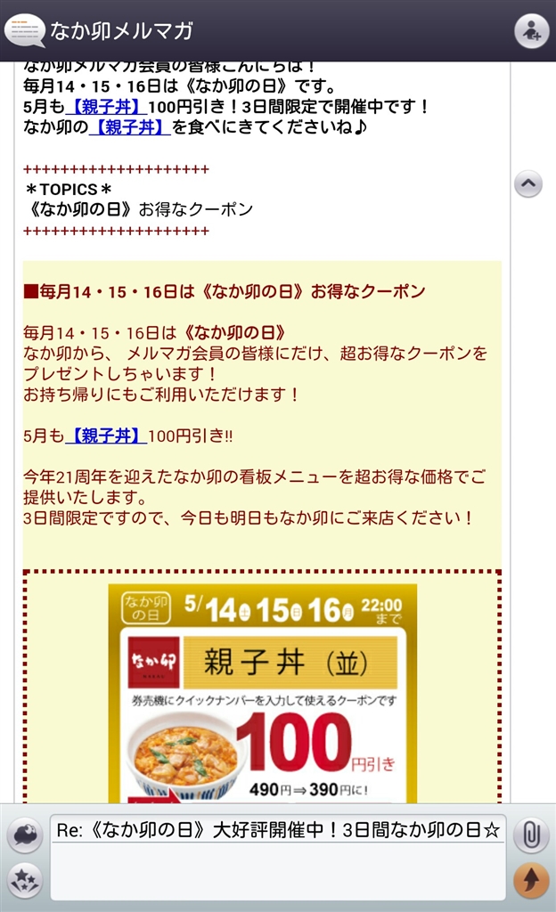 毎月14,15,16日は「なか卯の日」 親子丼がお得でまいうー