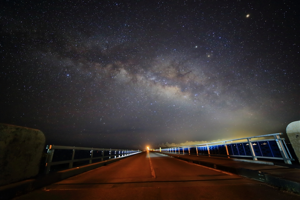池間大橋(遠方の明かりは車のヘッドライト)