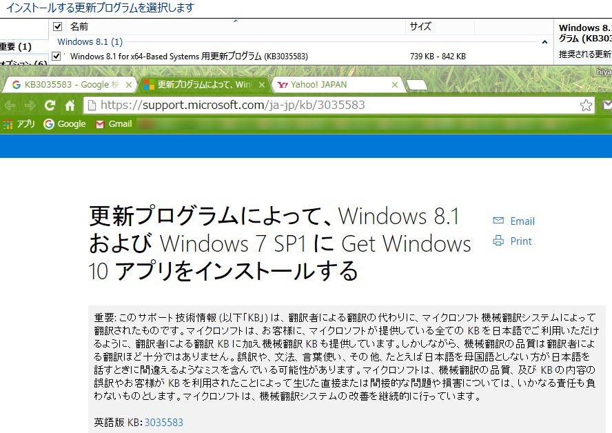 再表示されたKB3035583