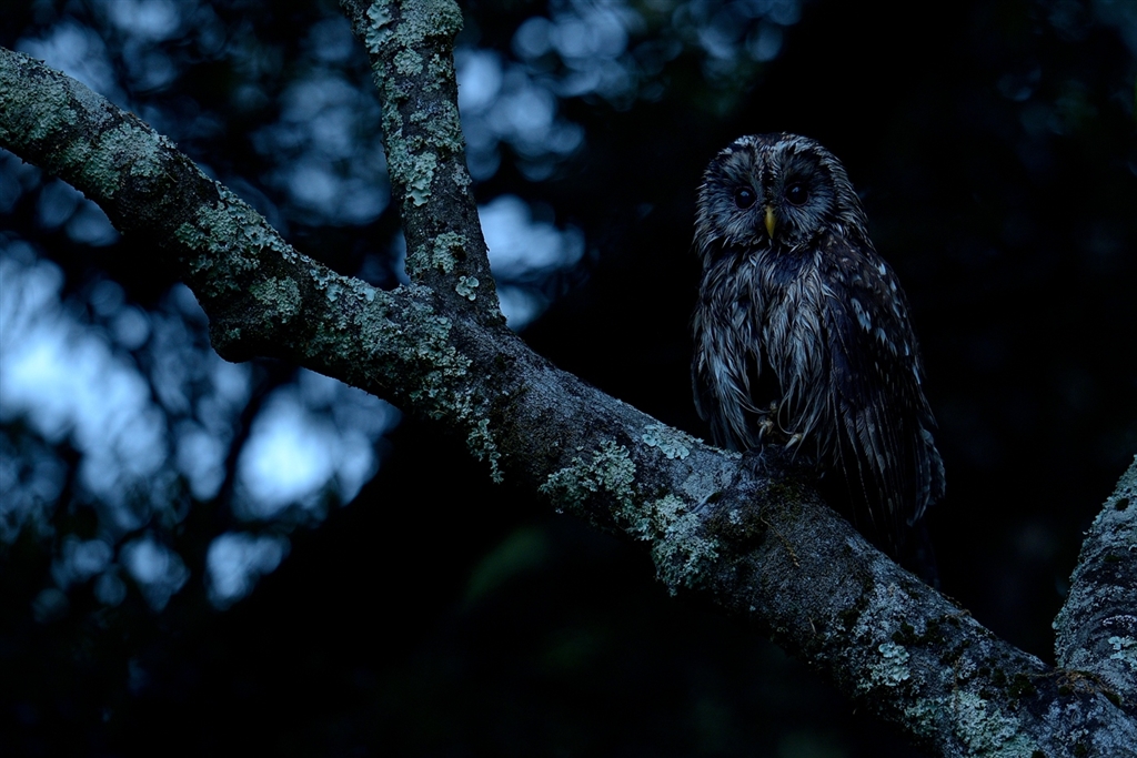 水浴び後のフクロウ