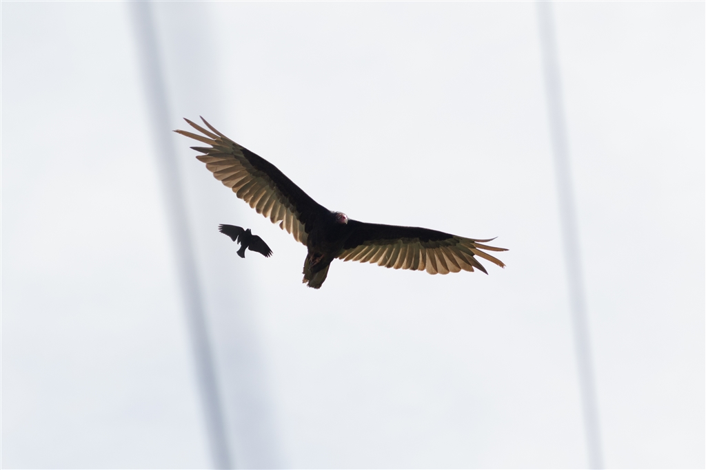 ヒメコンドル、隣はいつものお邪魔虫のハゴロモガラス
