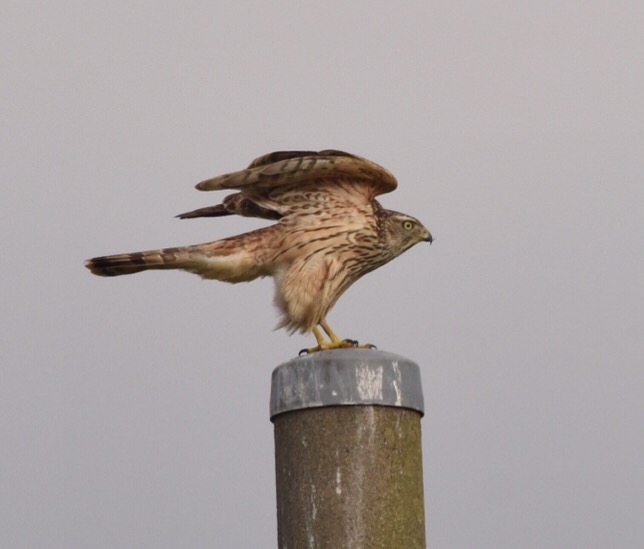 オオタカ幼鳥。成鳥羽が1枚見えます。そそりますねえ