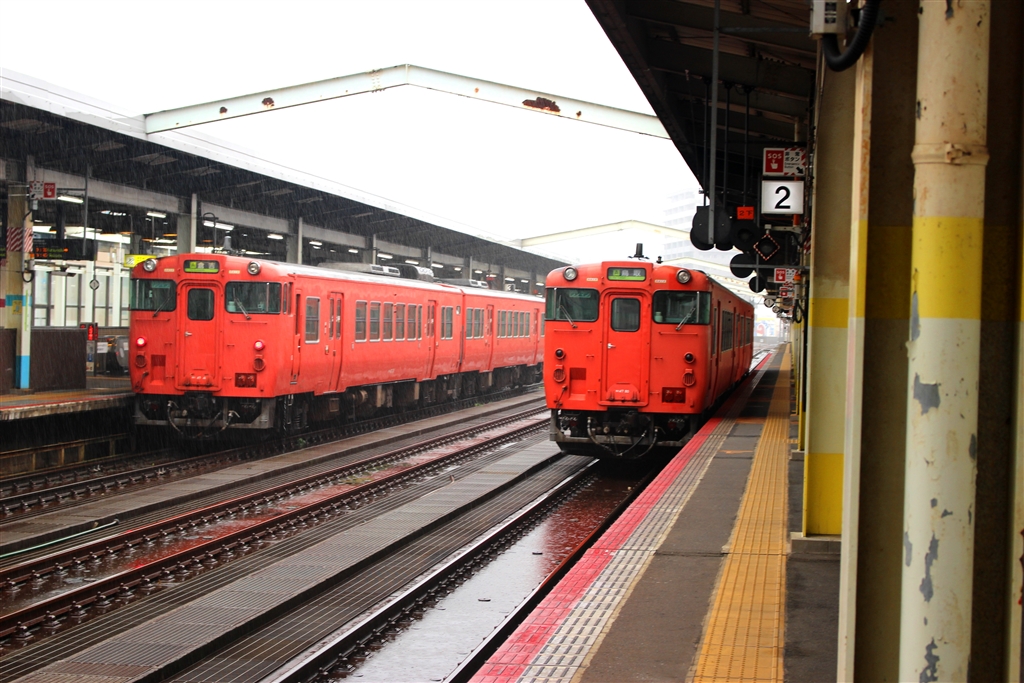 朝、雨の鳥取駅 キハ47