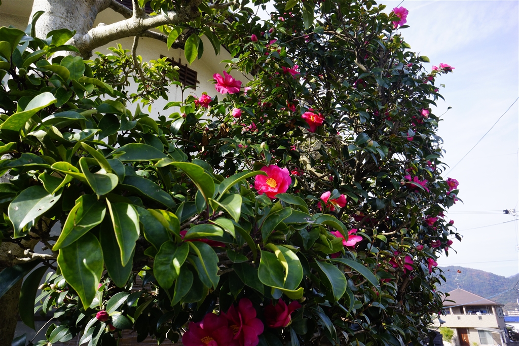 途中の民家の塀越しの光景です。ご主人は山茶花だと仰いました。