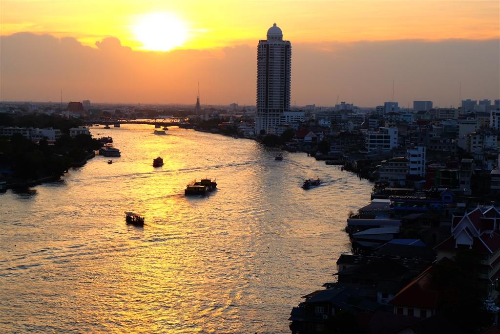 バンコク・チャオプラヤ川の夕陽