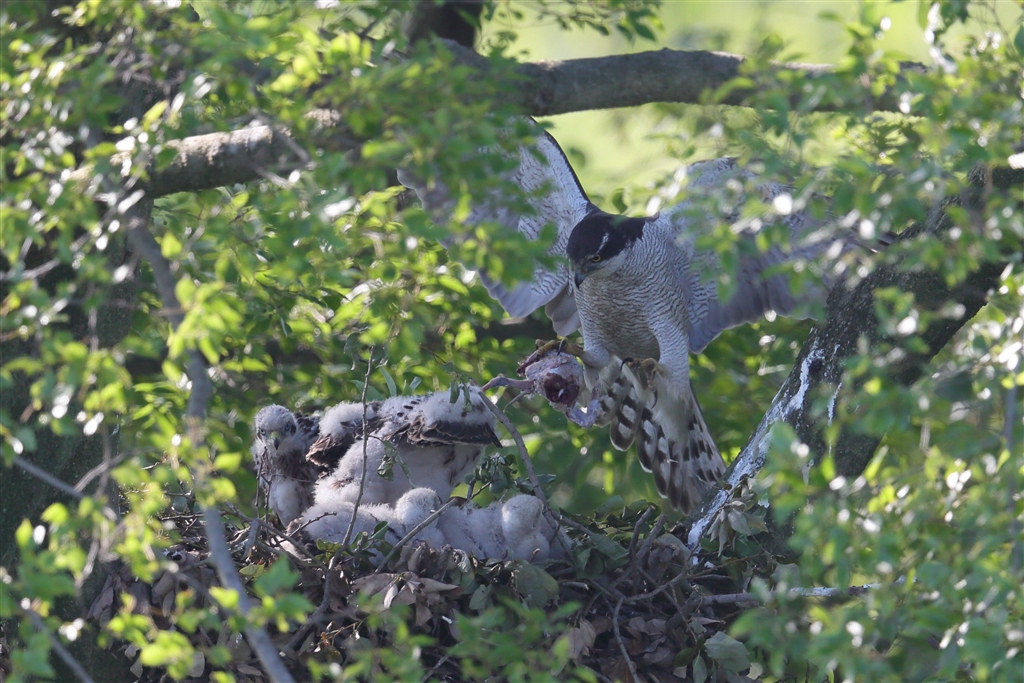 餌を持ってきたオオタカのお母さん