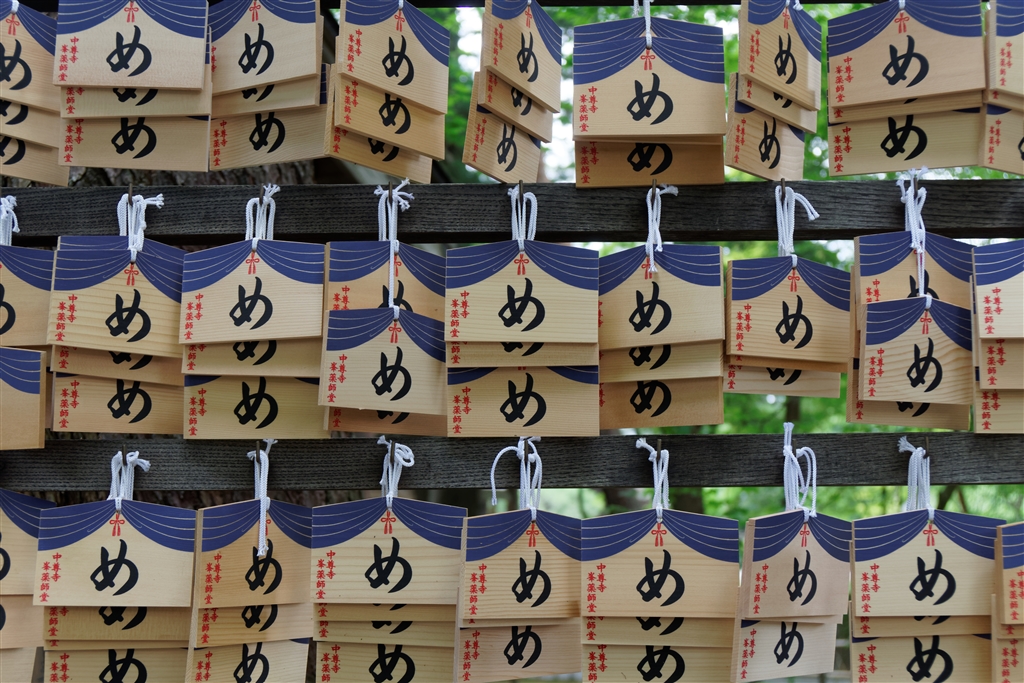 お薬師さんの前の目の絵馬が強烈です